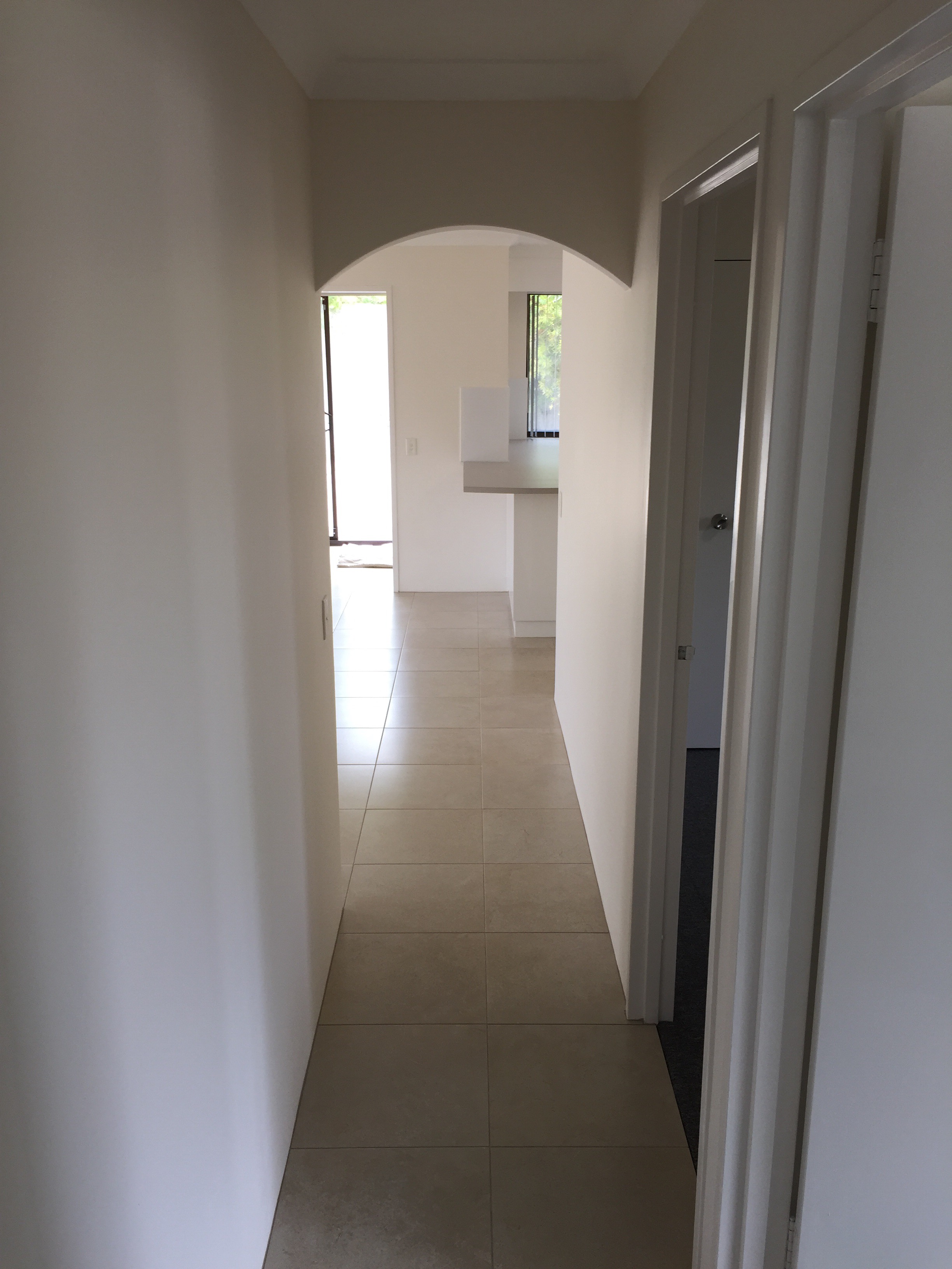 After 5 weeks of work the renovation is complete, 2 new bathrooms & separate wc with floor to ceiling tiling. Floor tiling using a 450×450 Spanish tile running through most of the house. New kitchen installed with breakfast bar & tiling above bench top. Painted throughout using white on the ceilings, antique white to walls & the same to all woodwork. New carpets to bedrooms & front lounge.
