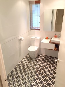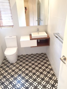 Bathroom renovation in Wembley Downs (2017): Fixtures in same location, tiling to 2m, walk in shower, 10mm shower panel…