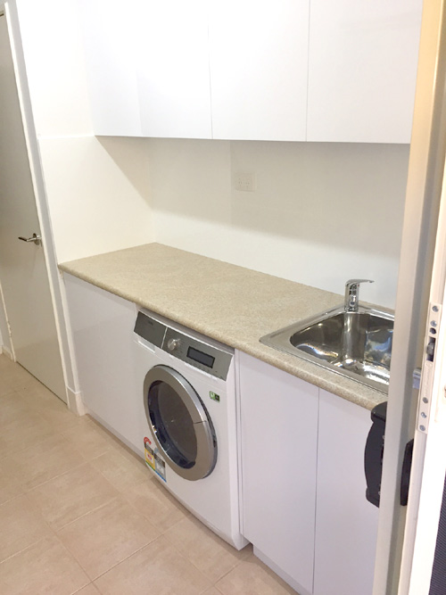 Laundry renovation in North Perth for the same house as the bathroom: a laundry make over with bespoke cabinets …