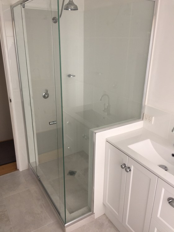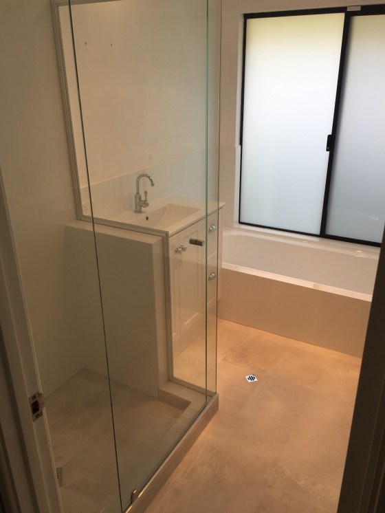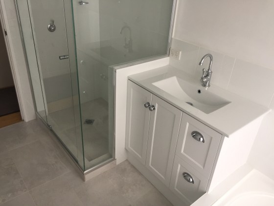 Customer required a larger shower area, I had a smaller bespoke vanity cabinet made with stone top , which made the shower larger by 300mm.
