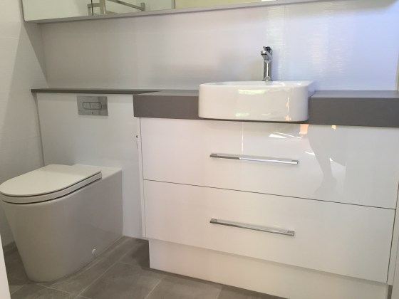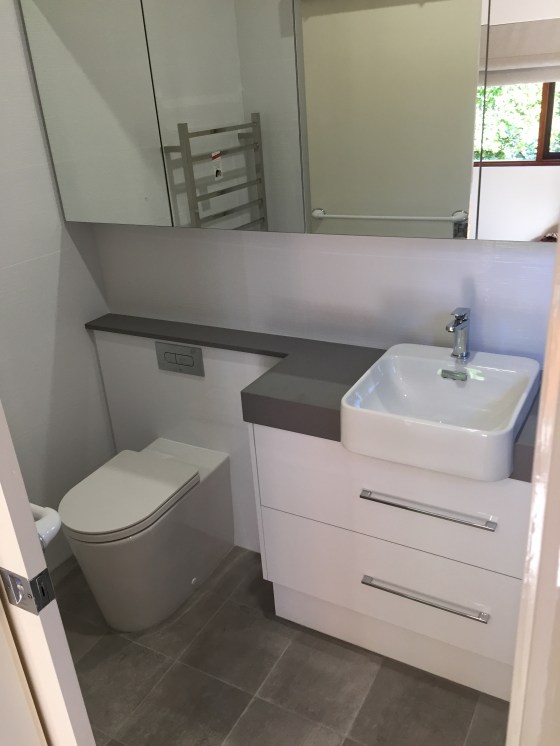 Full renovation on ensuite bathroom with bespoke cabinetry, along with concealed toilet system within cabinetry.